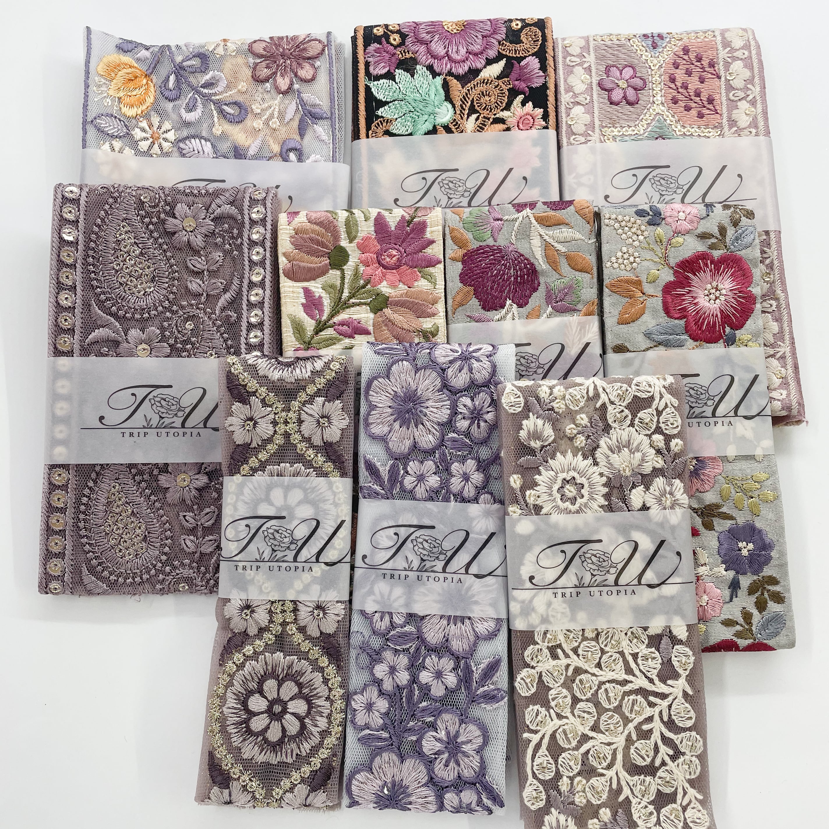 【数量限定】パープル系インド刺繍リボンセット(50cmカット10本入り)