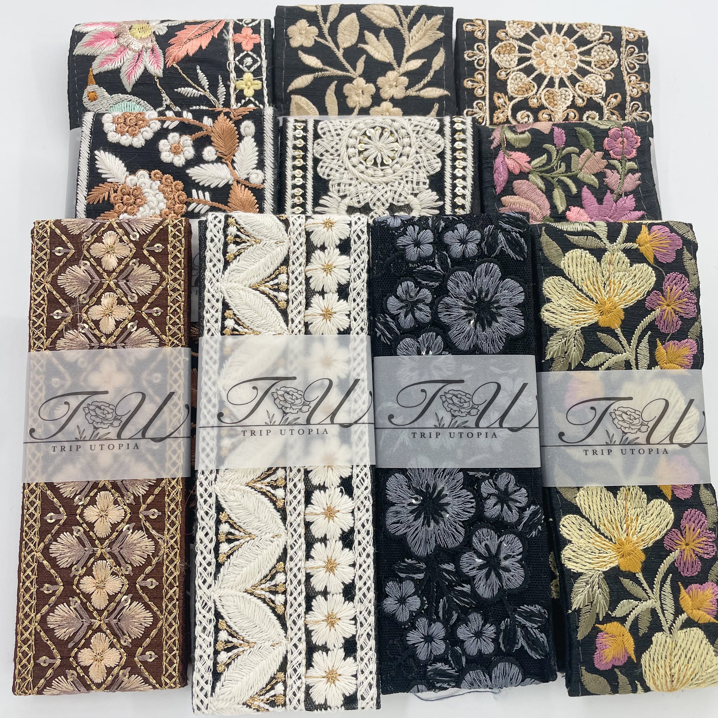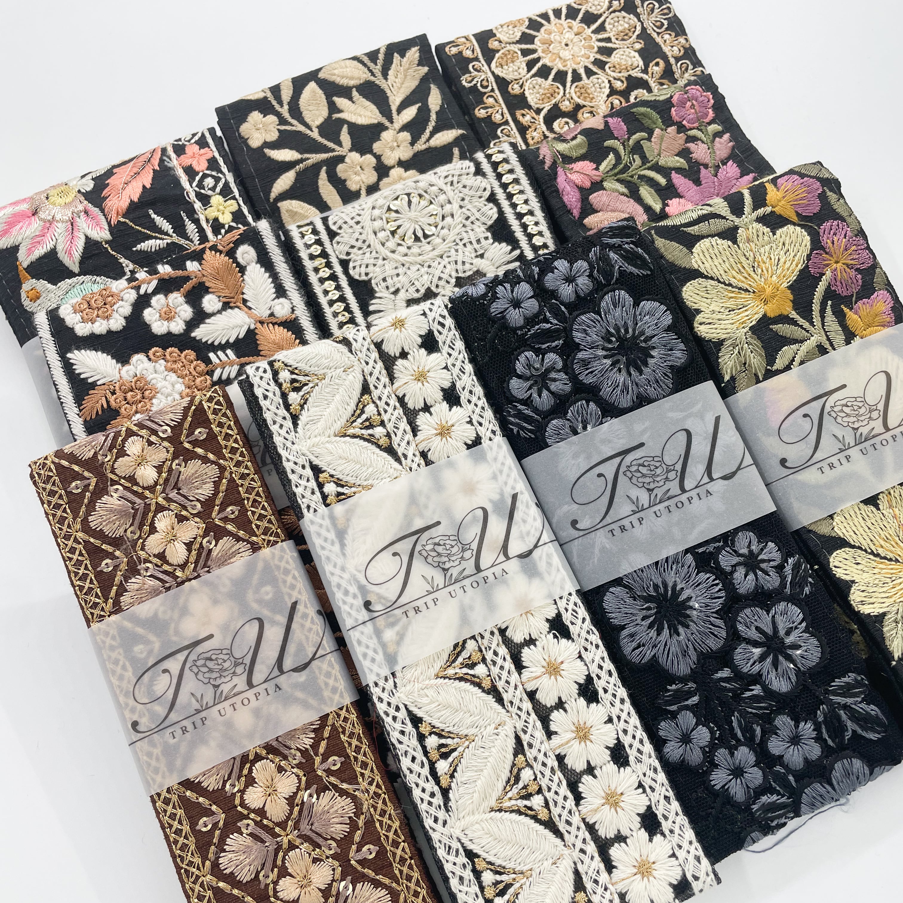 【数量限定】モノトーン系インド刺繍リボンセットA(50cmカット10本入り)