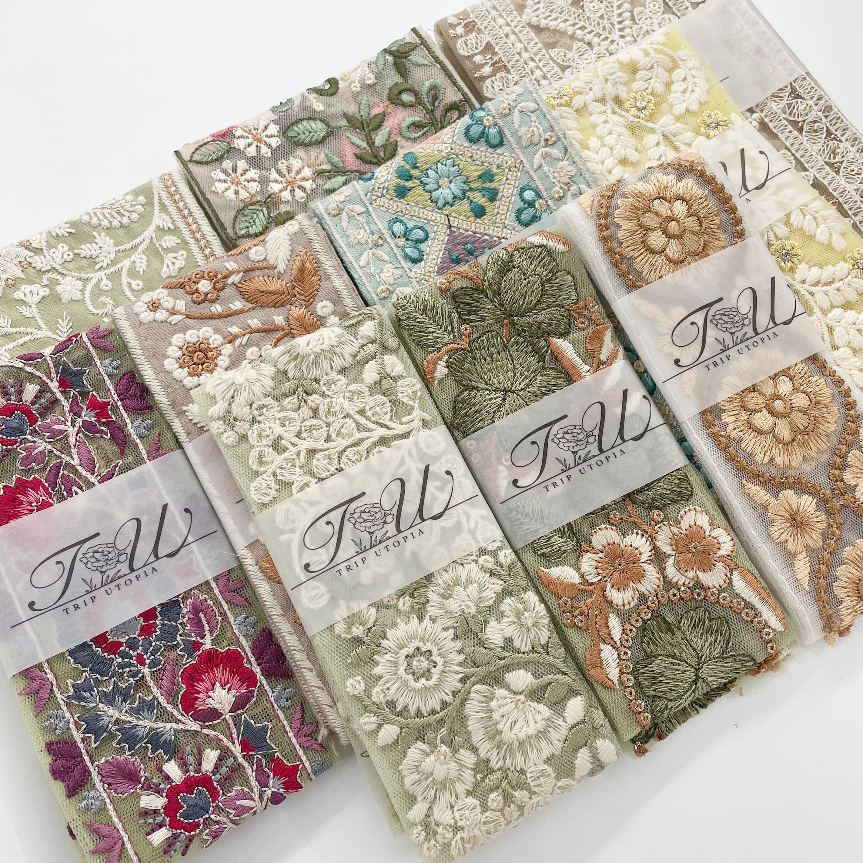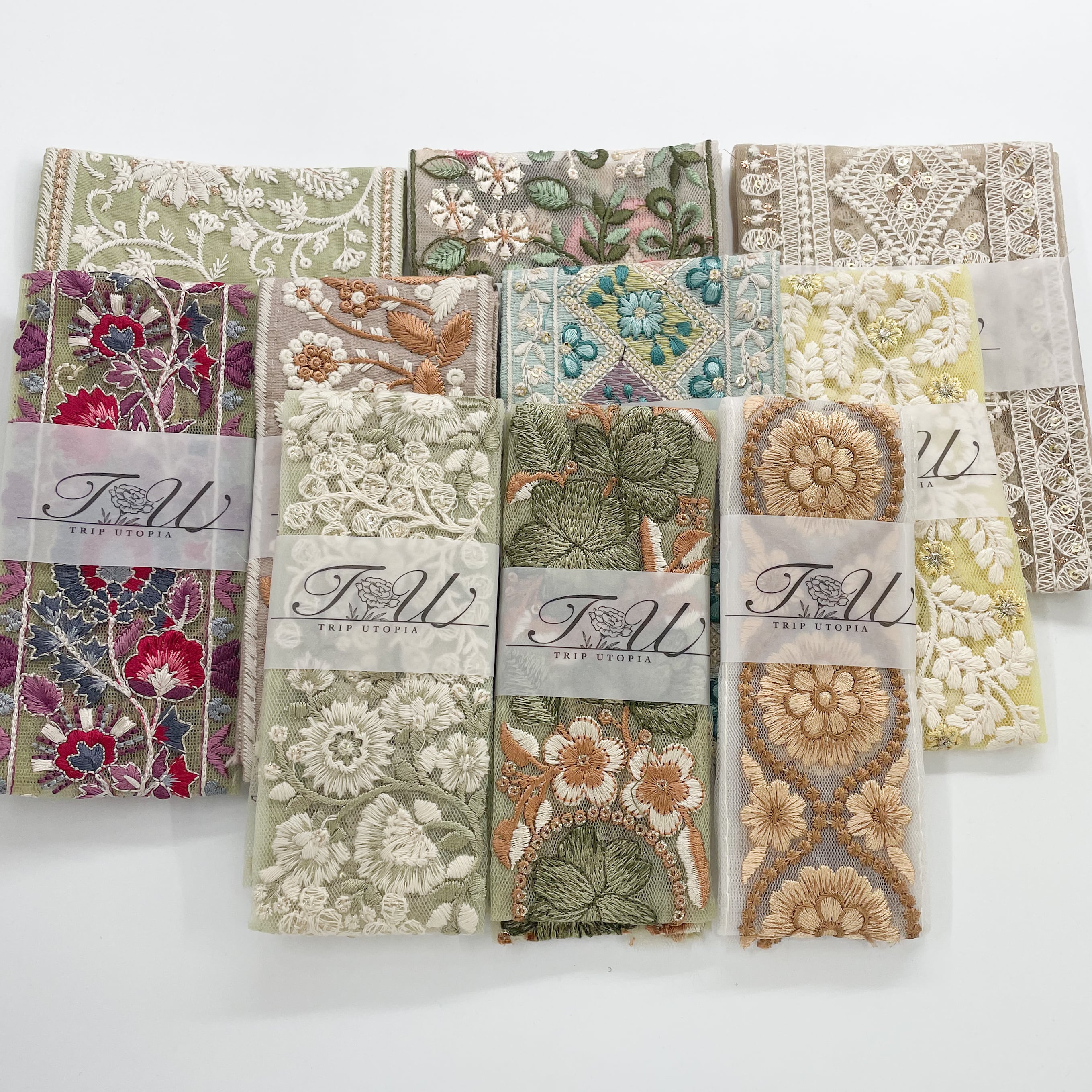 【数量限定】グリーン系インド刺繍リボンセットB(50cmカット10本入り)