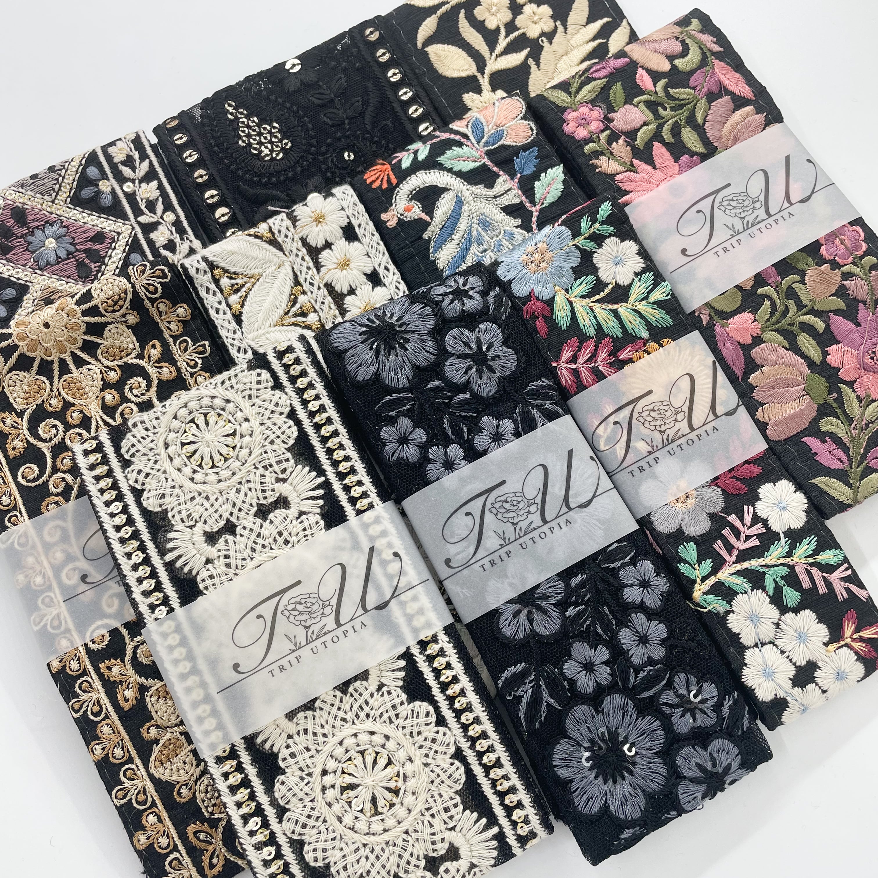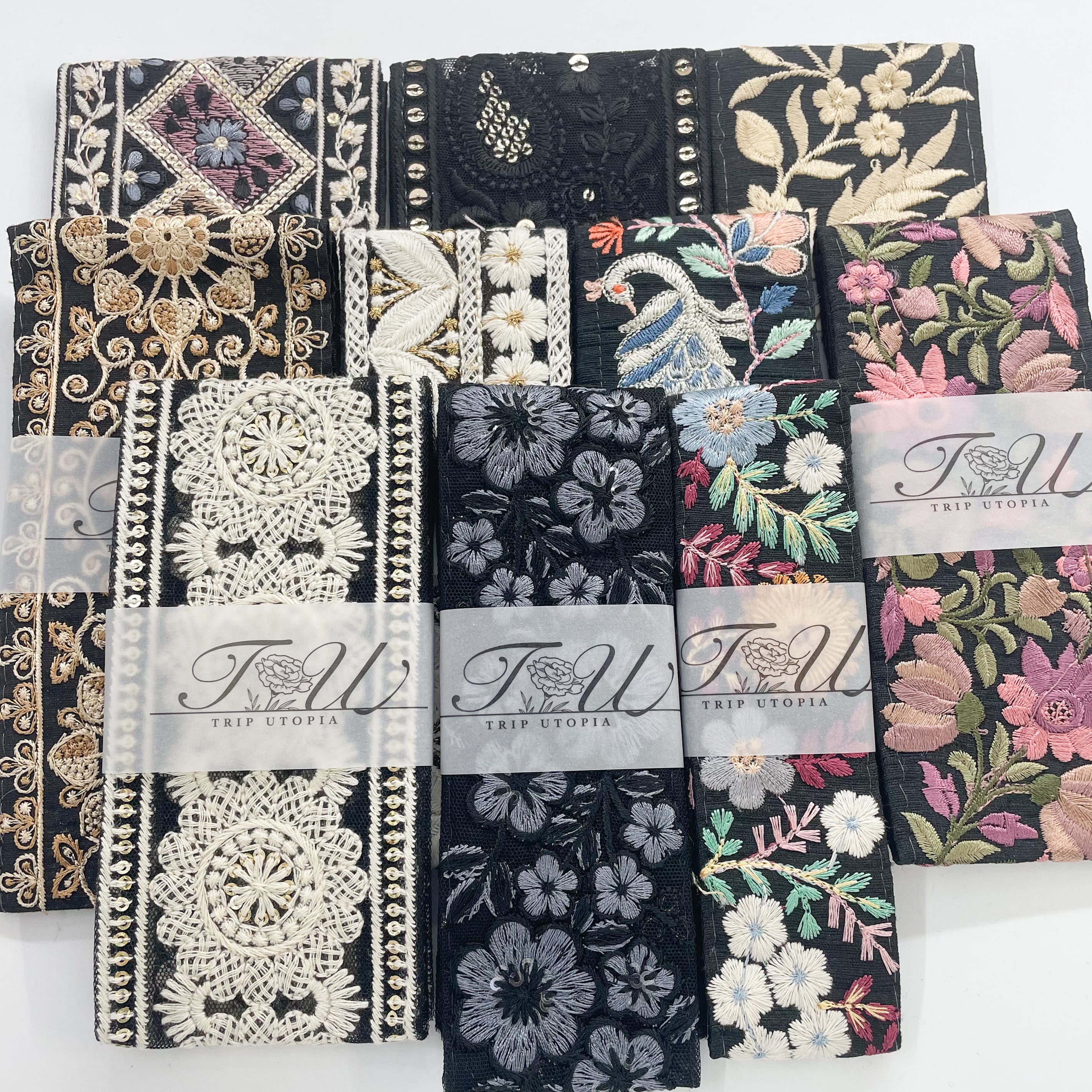 【数量限定】モノトーン系インド刺繍リボンセットB(50cmカット10本入り)