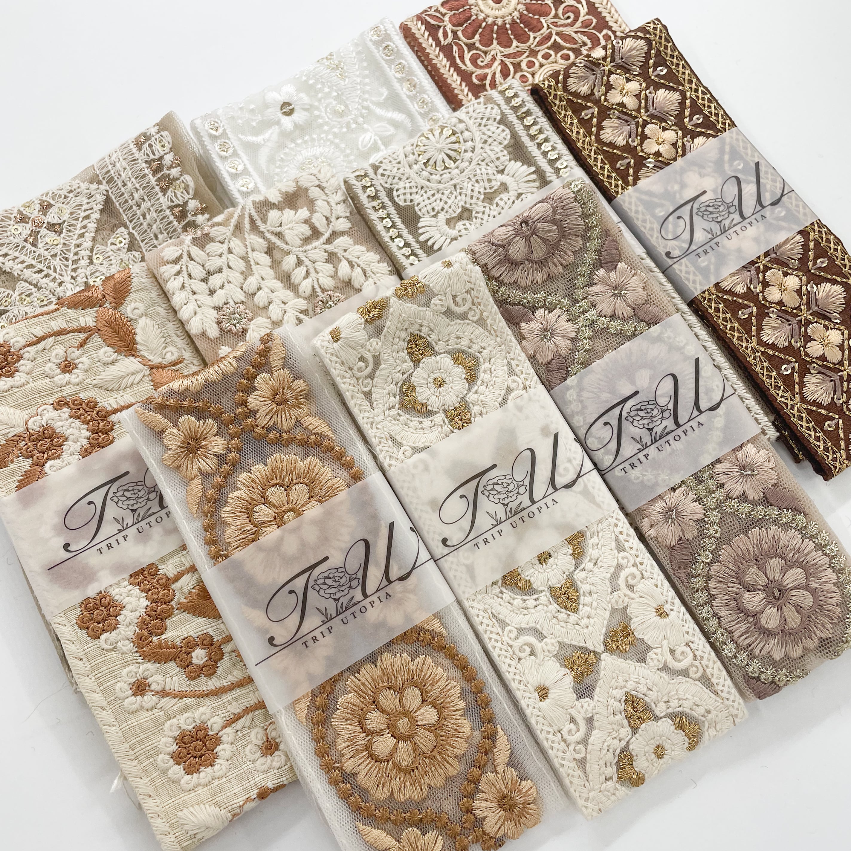 【数量限定】ホワイト・ベージュ系インド刺繍リボンセット(50cmカット10本入り)