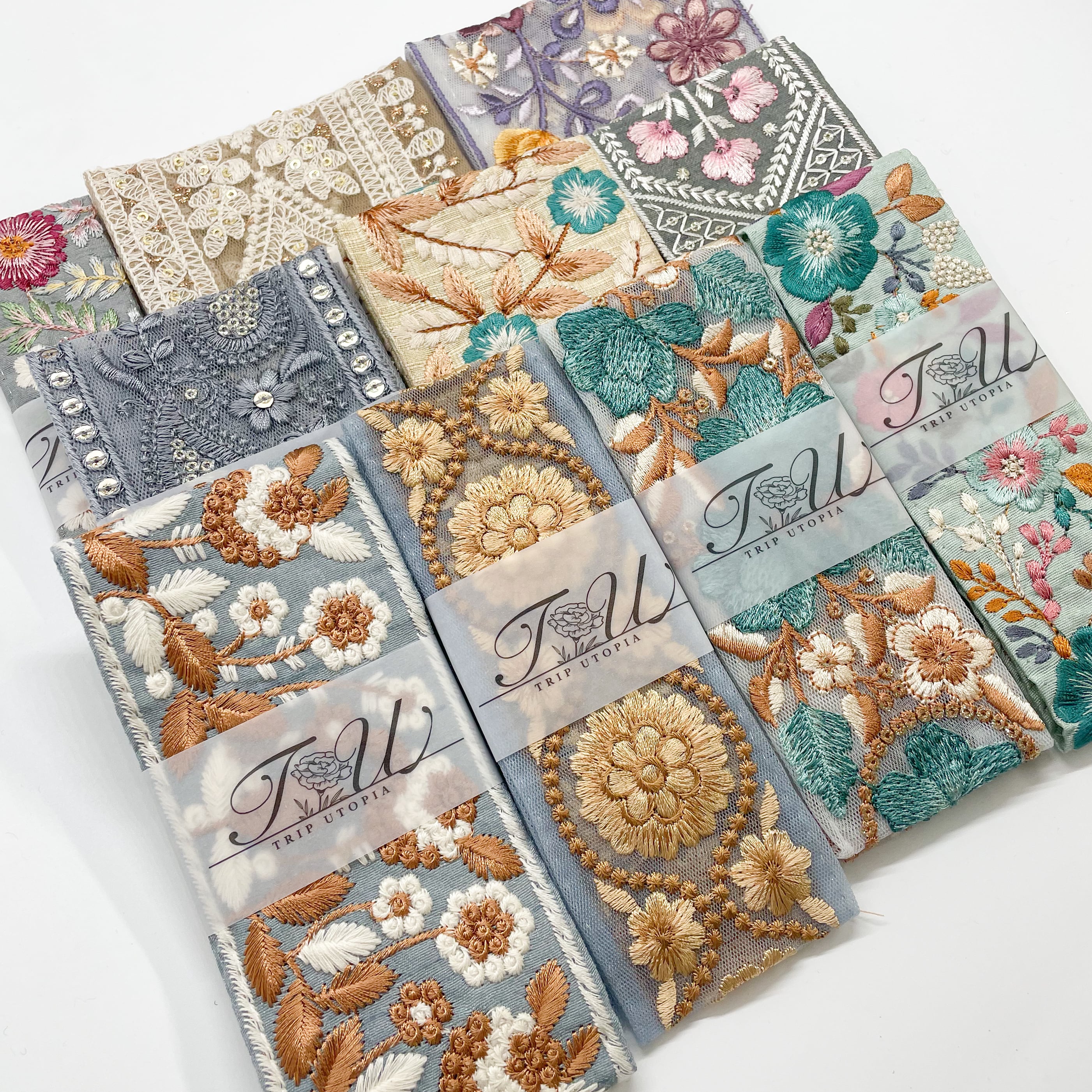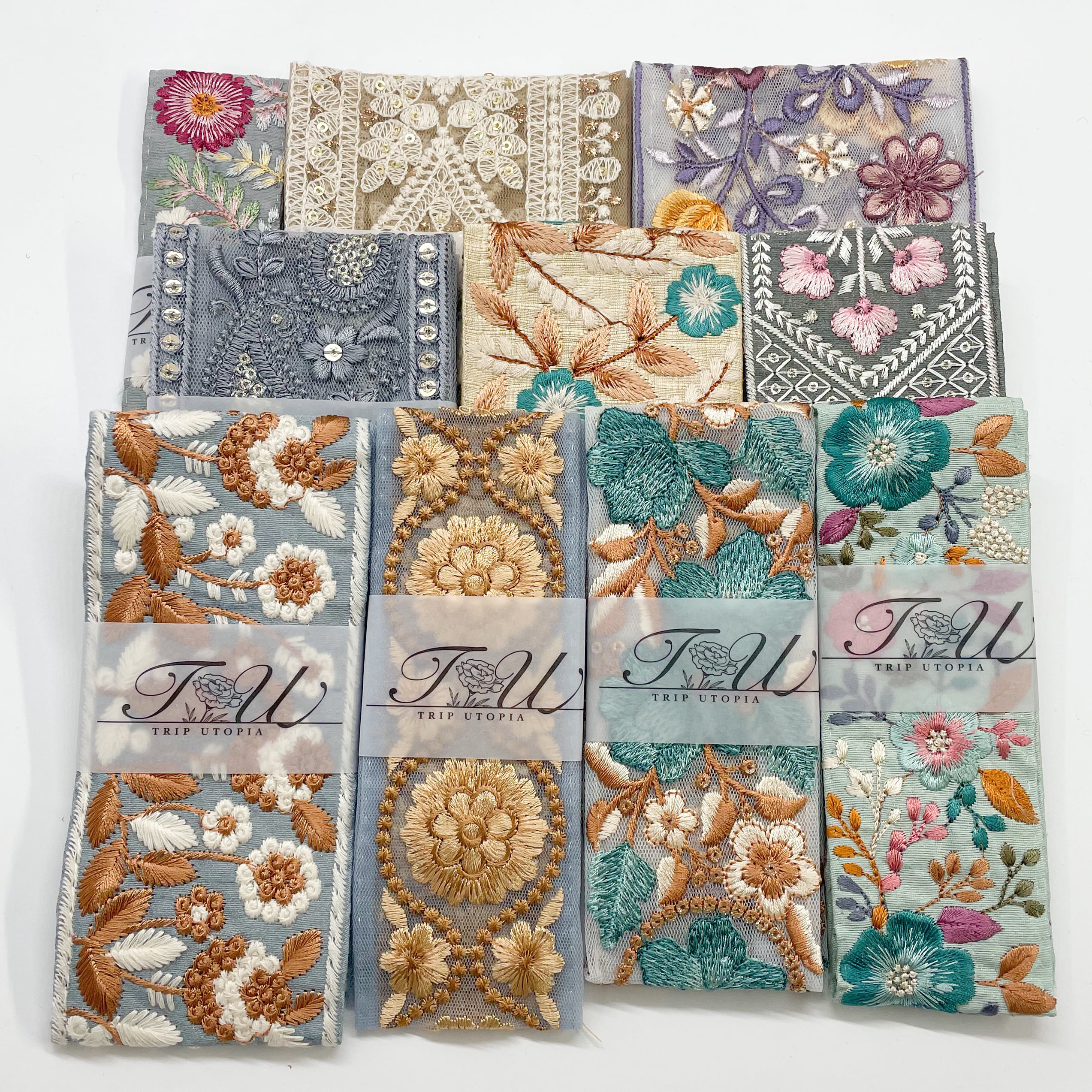 【数量限定】ブルー系インド刺繍リボンセット1(50cmカット10本入り)