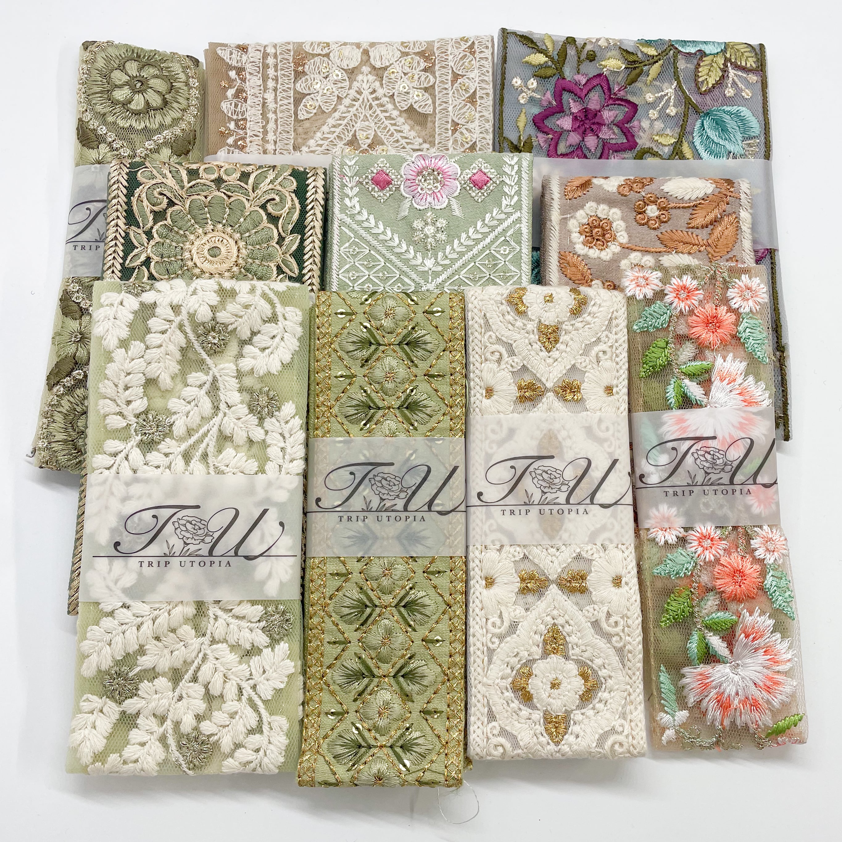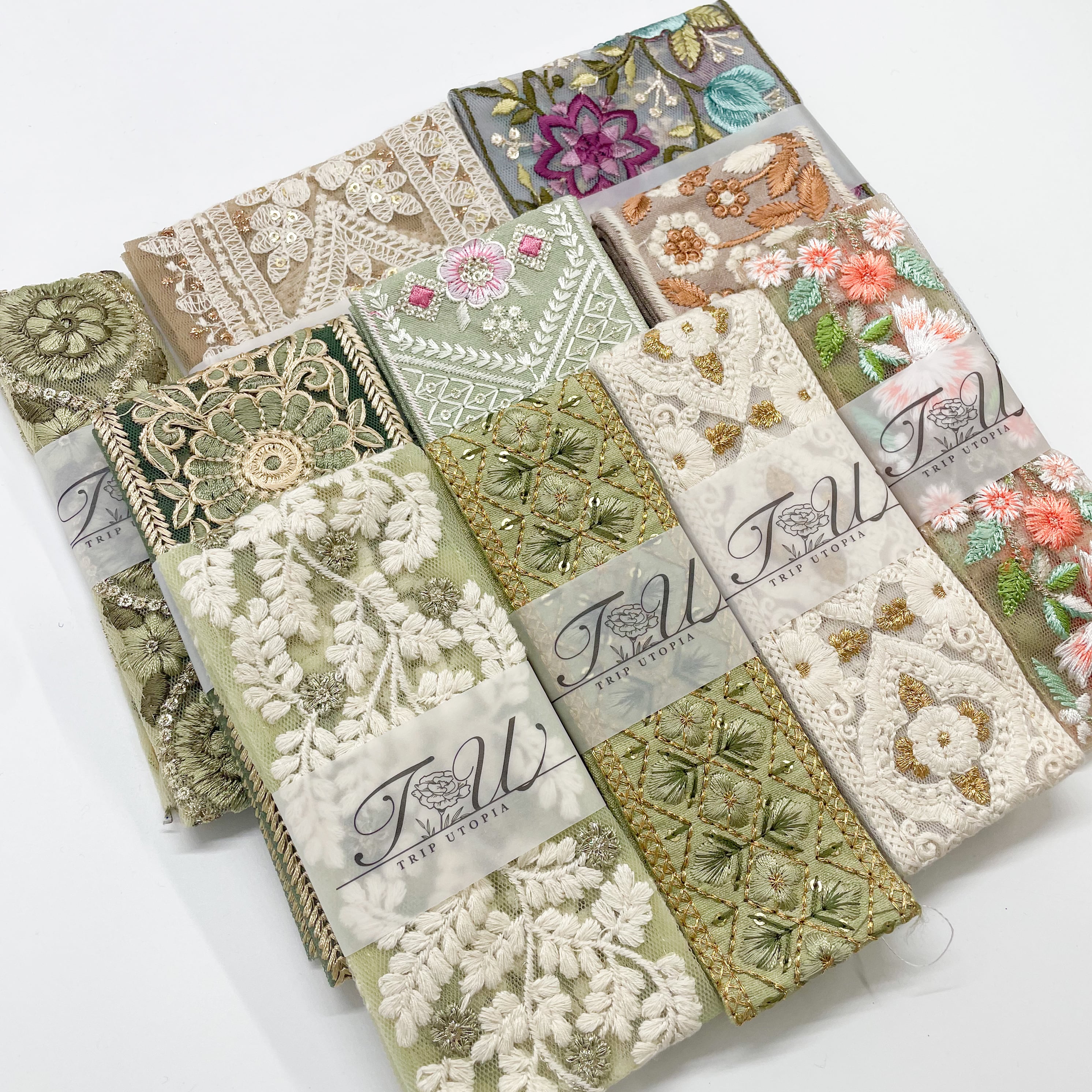 【数量限定】グリーン系インド刺繍リボンセット1(50cmカット10本入り)