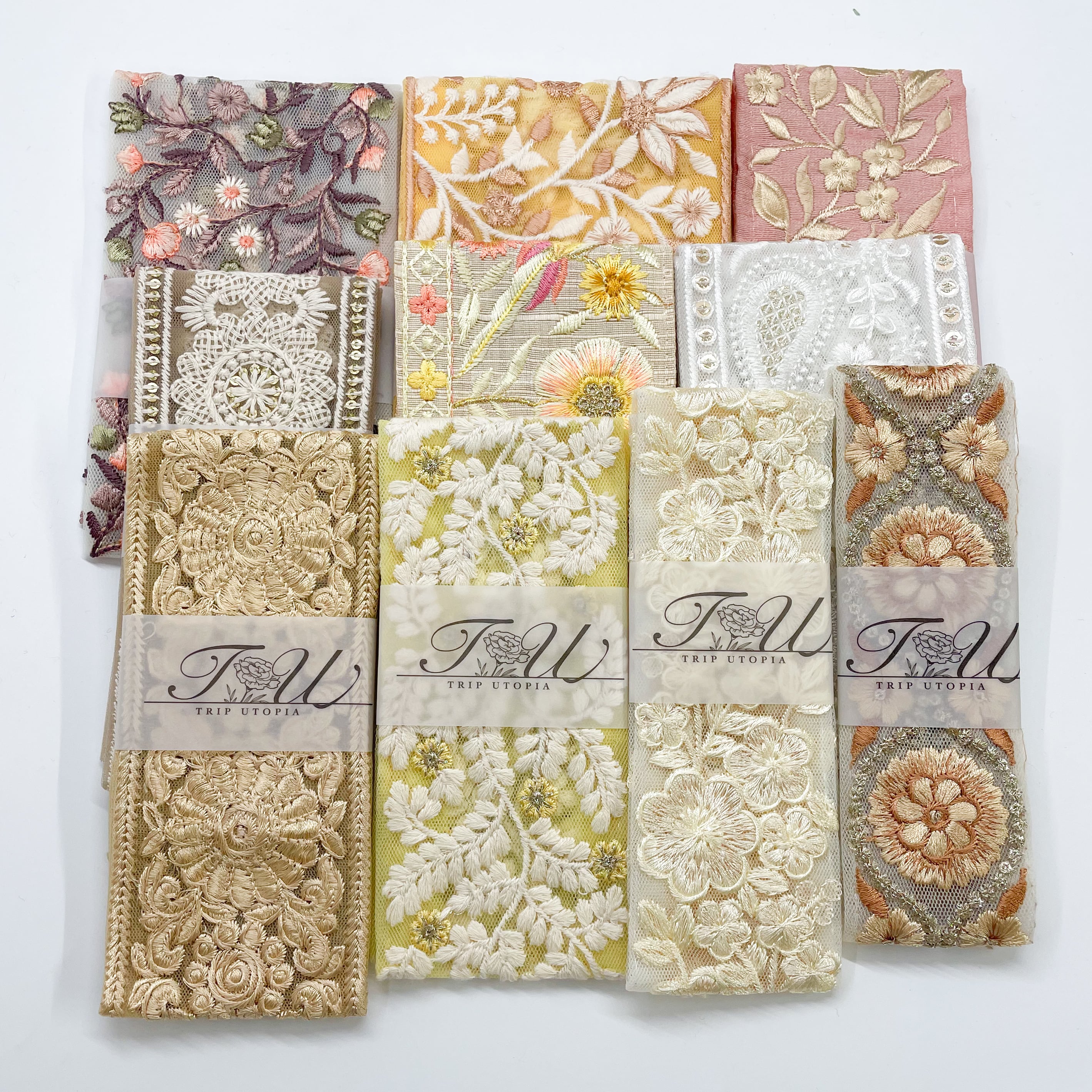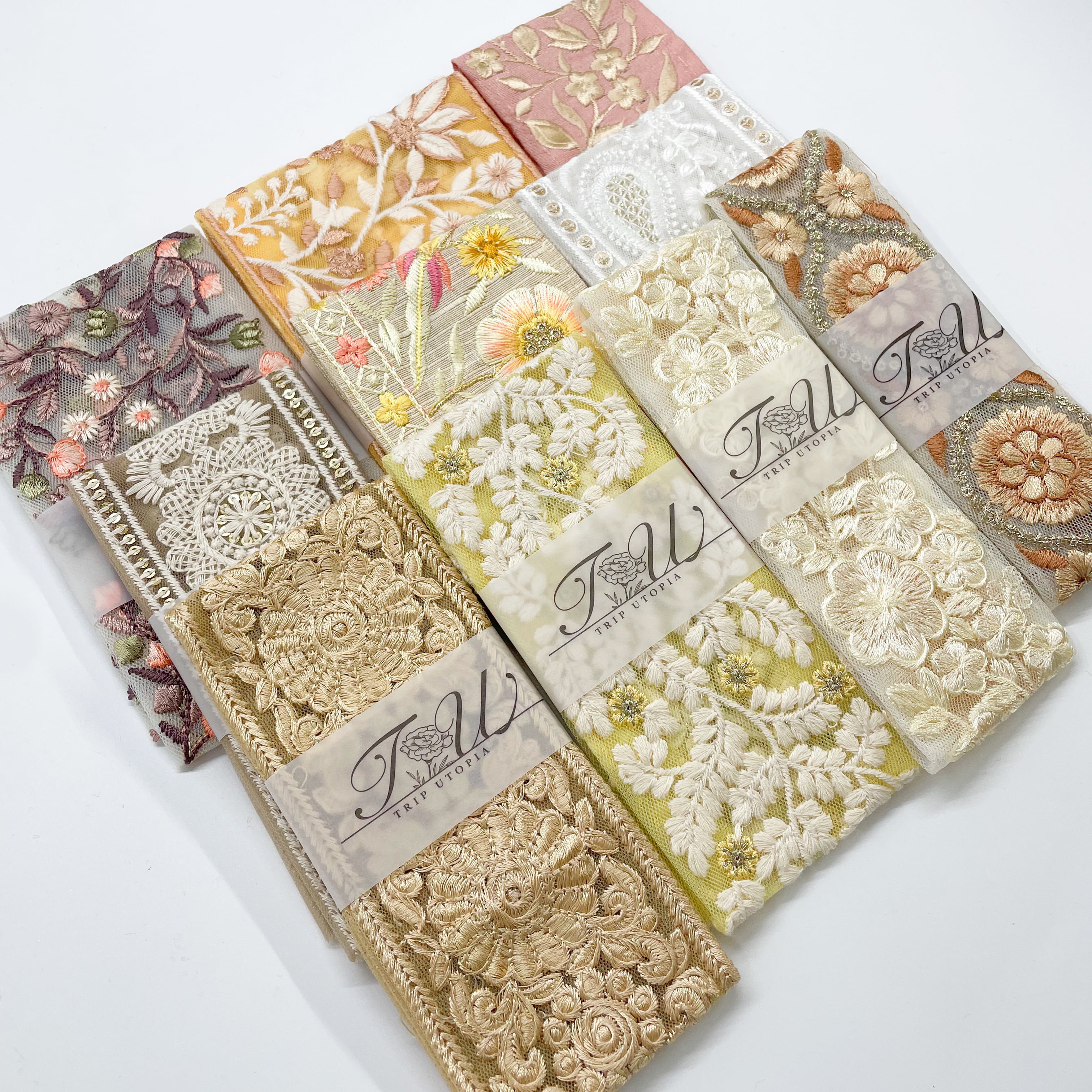 【数量限定】イエロー~ベージュ系インド刺繍リボンセット1(50cmカット10本入り)