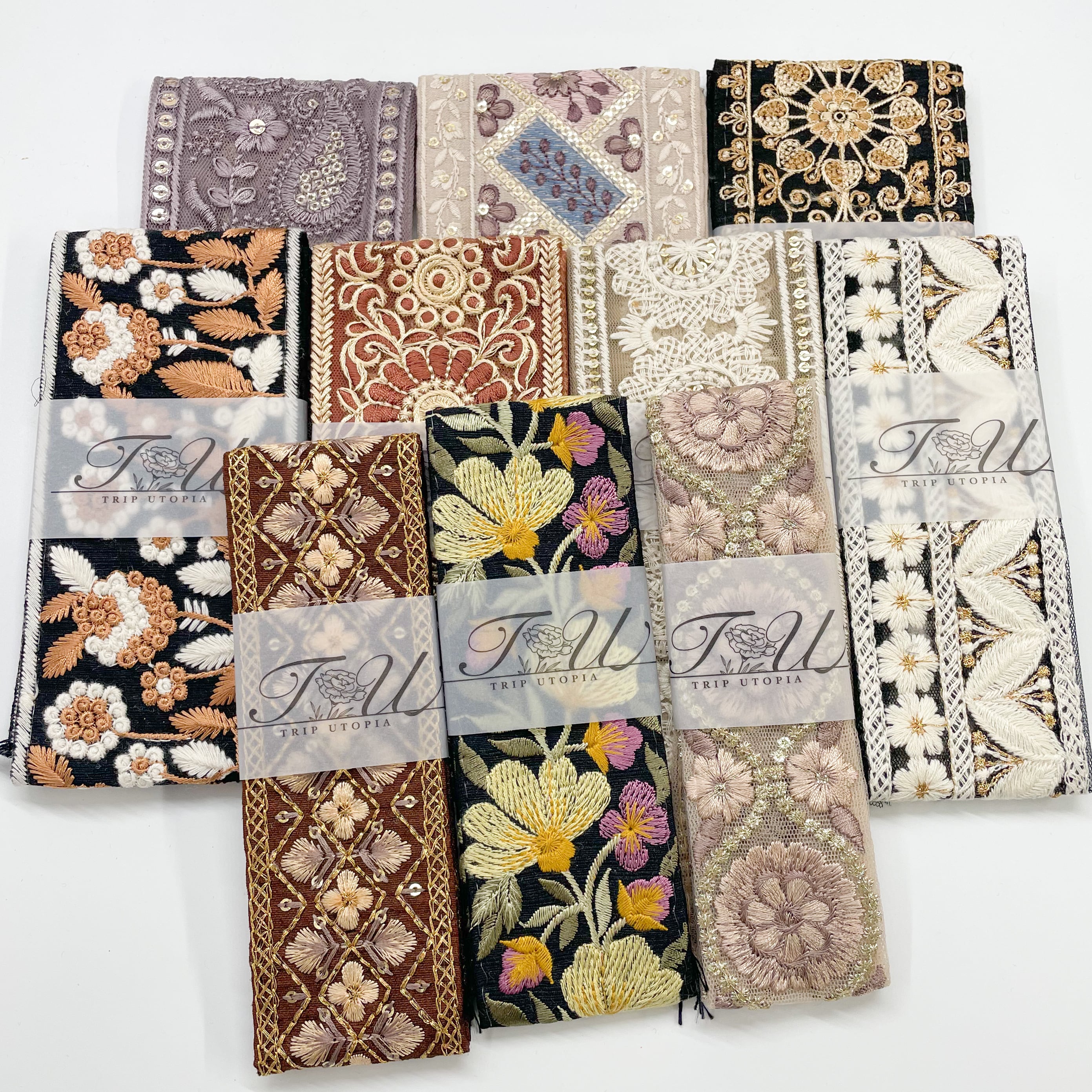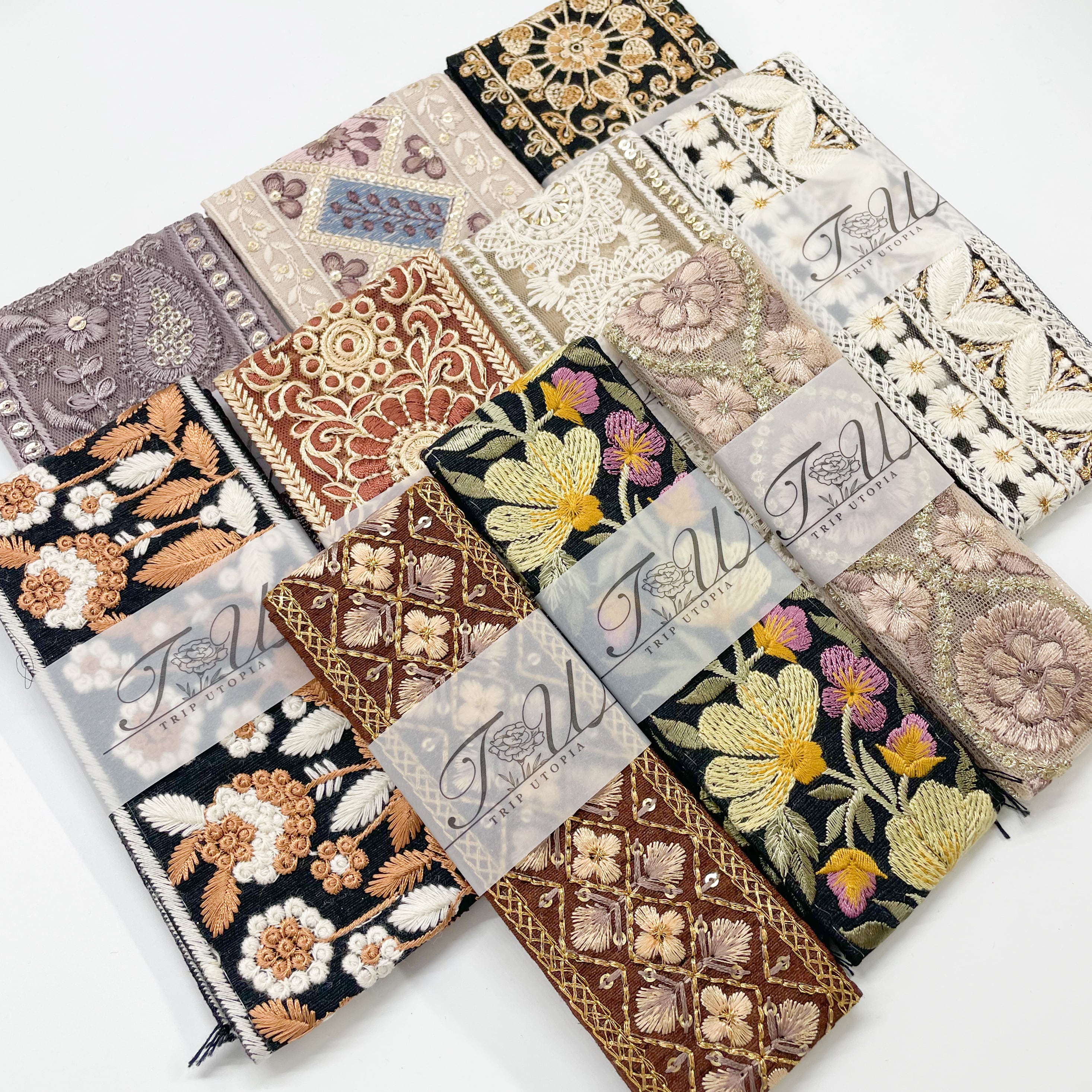 【数量限定】ブラウン系インド刺繍リボンセット1(50cmカット10本入り)