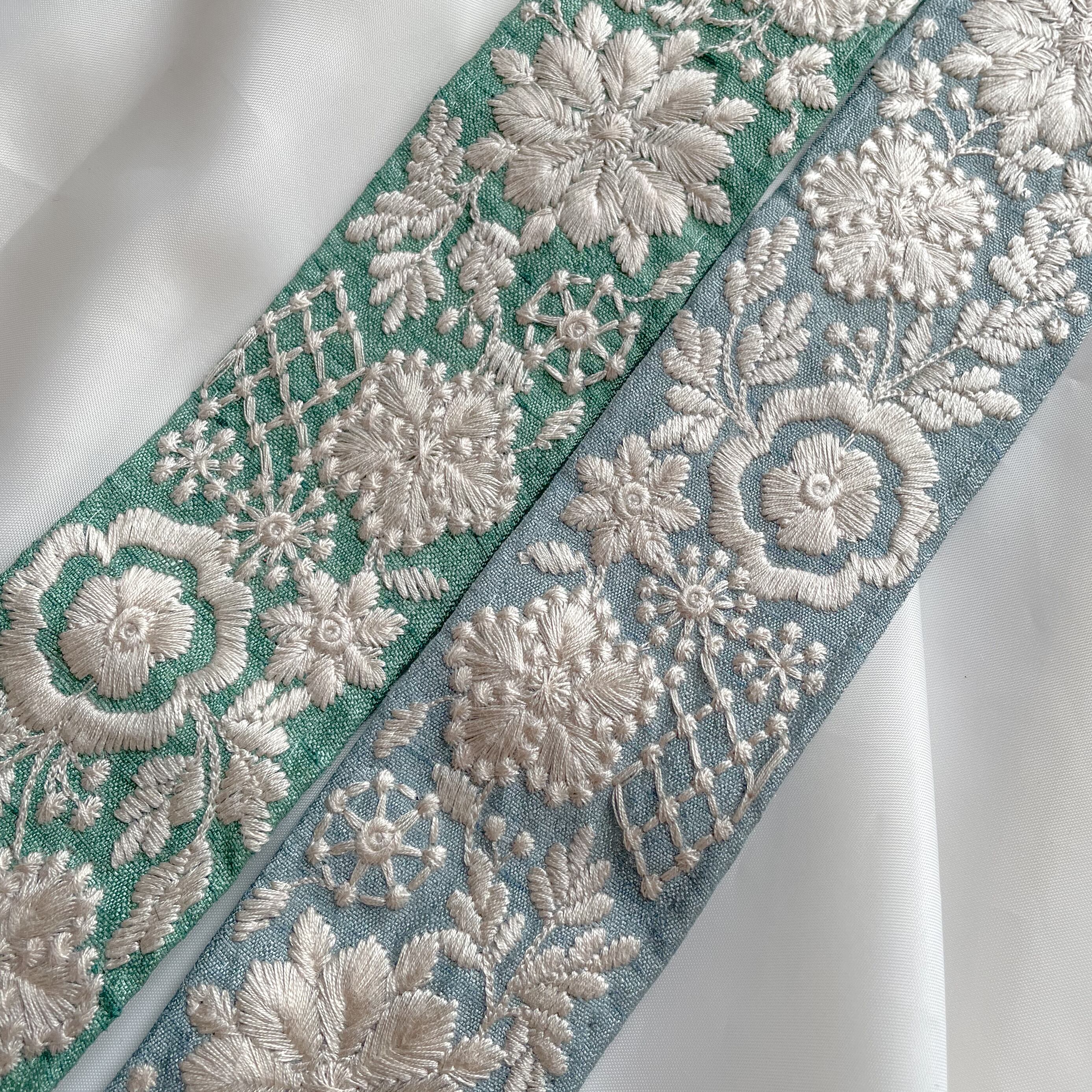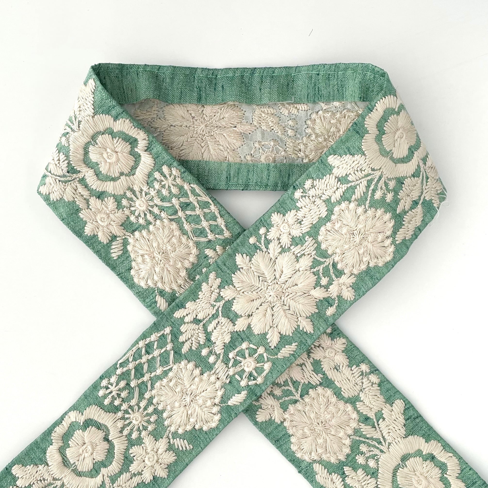 【50cmカット済み】ins0028 単色刺繍ミントグリーン インド刺繍リボン