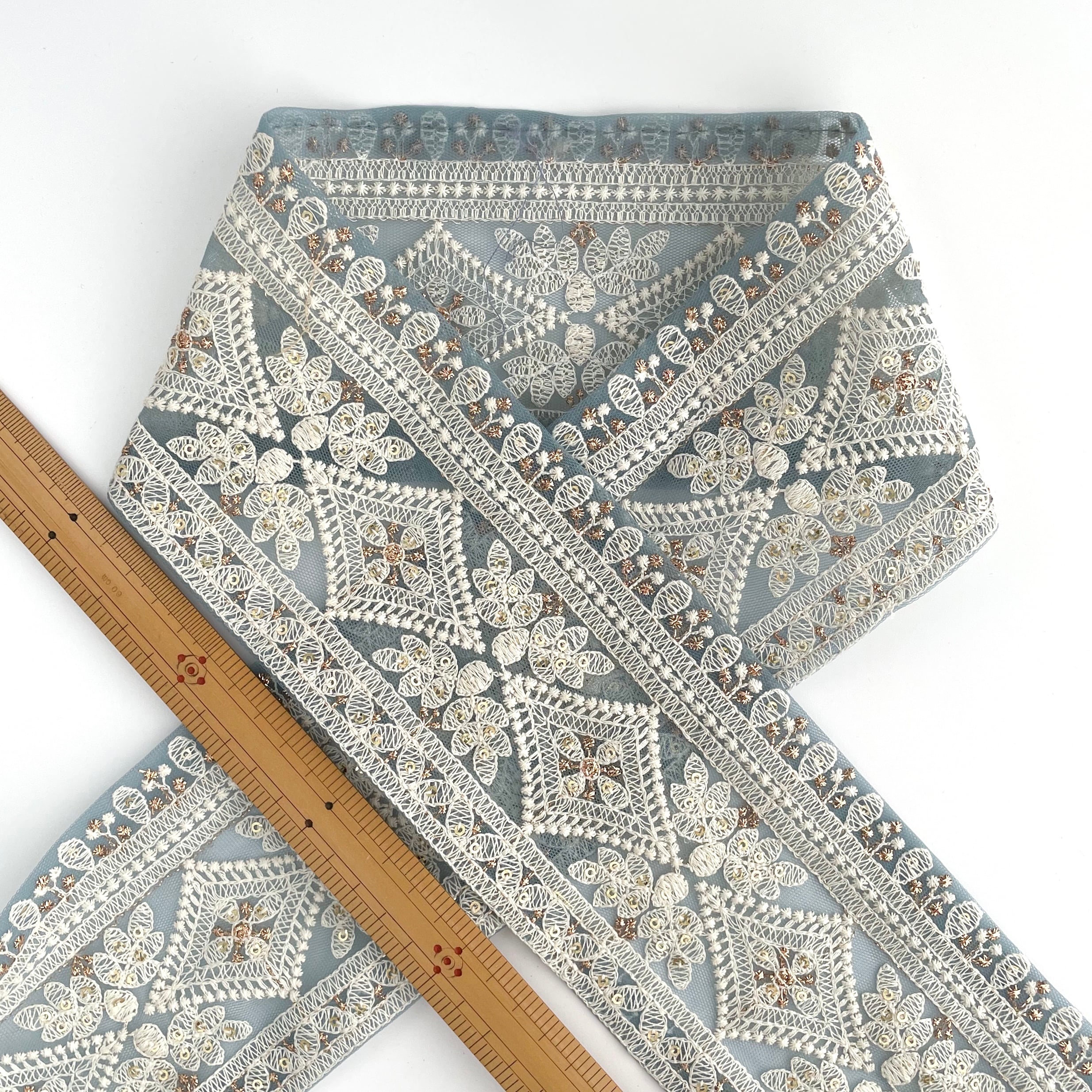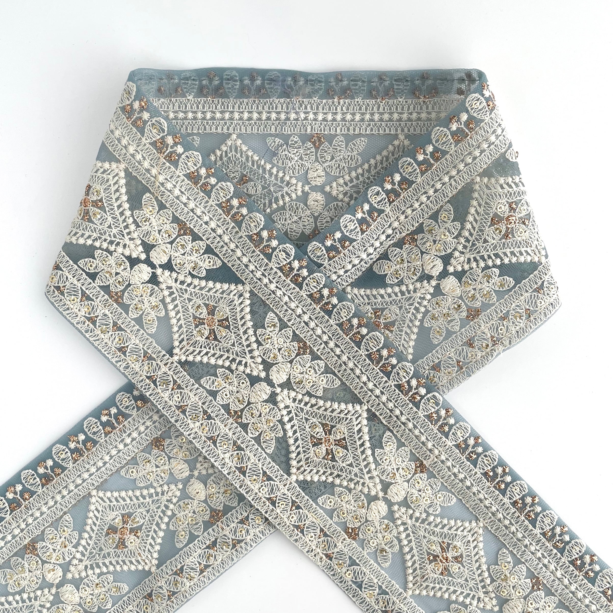 【50cmカット済み】ins0223チュールダイヤ ブルー インド刺繍リボン