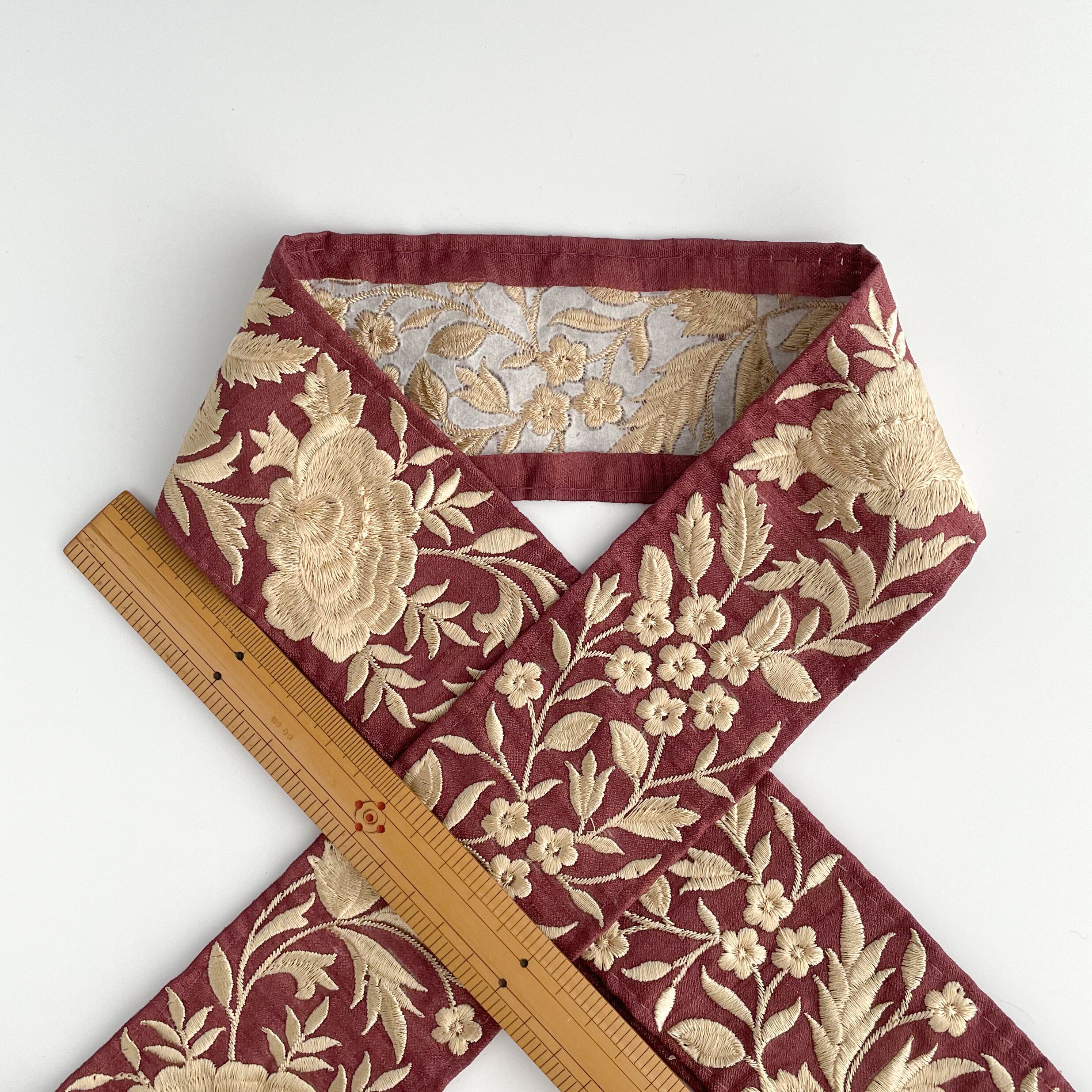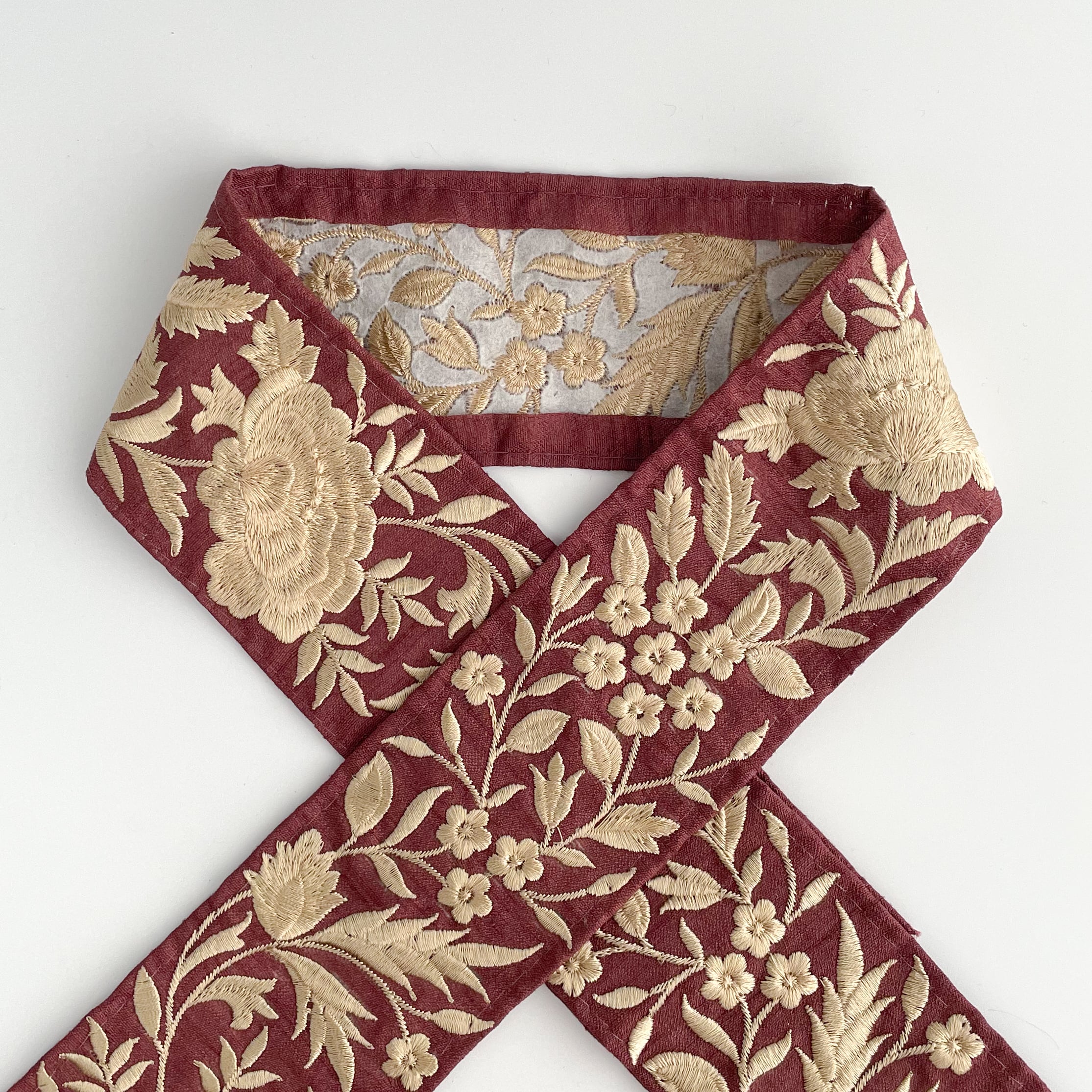 【50cmカット済み】ins0496 ゴールド単色刺繍 バーガンディ ※注意事項あり インド刺繍リボン