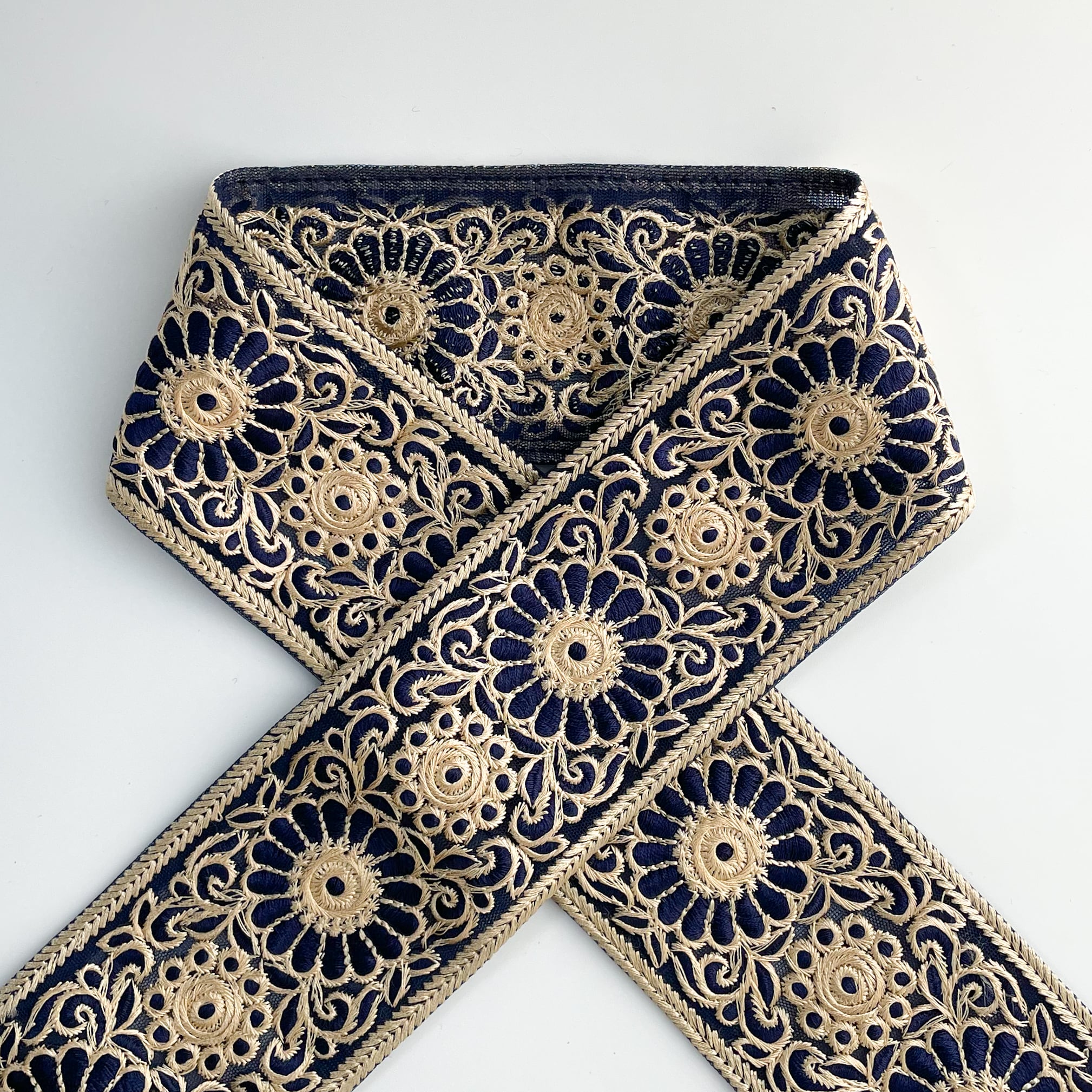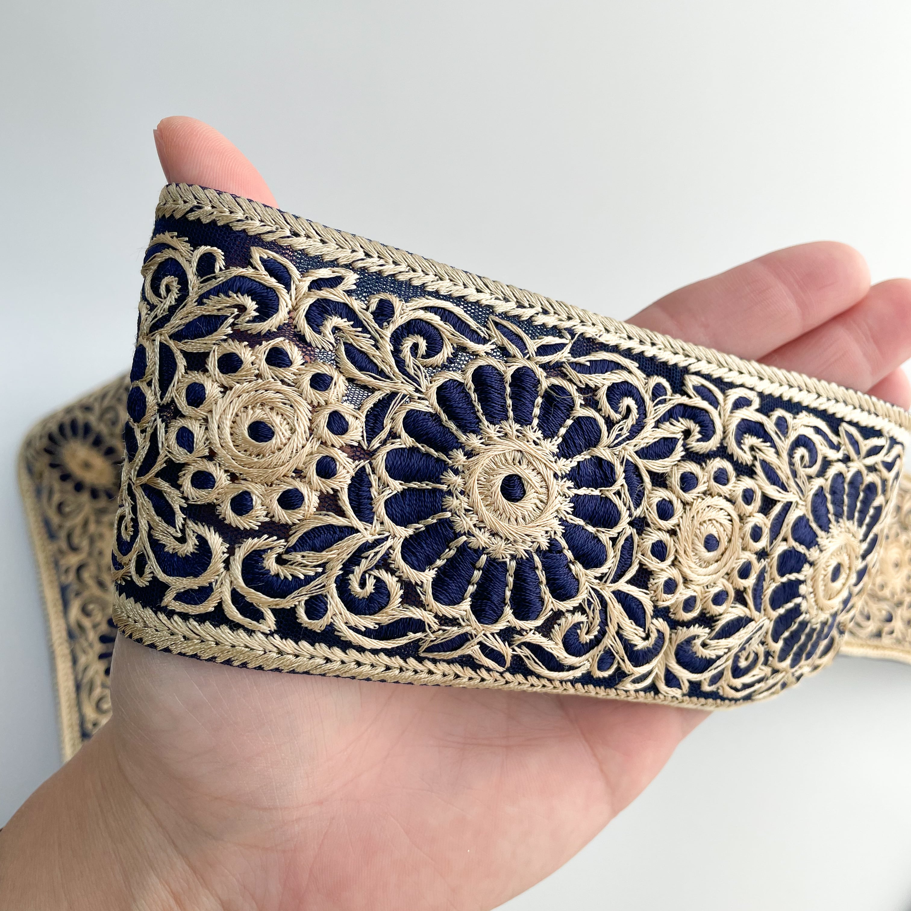 【50cmカット済】ins0838 チュール菊花 ネイビー インド刺繡リボン