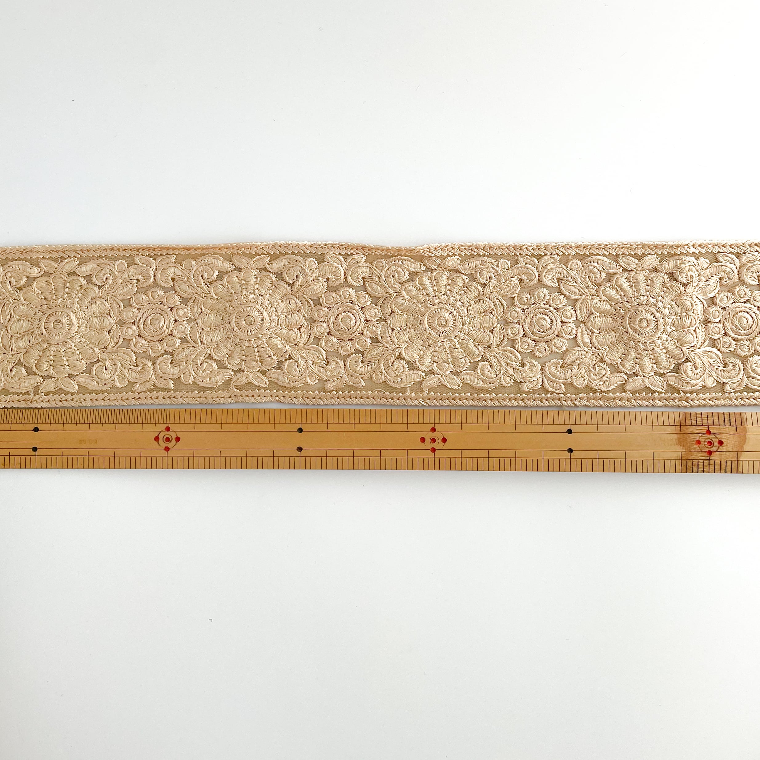 【50cmカット済】ins0840 チュール菊花 きなり インド刺繍リボン