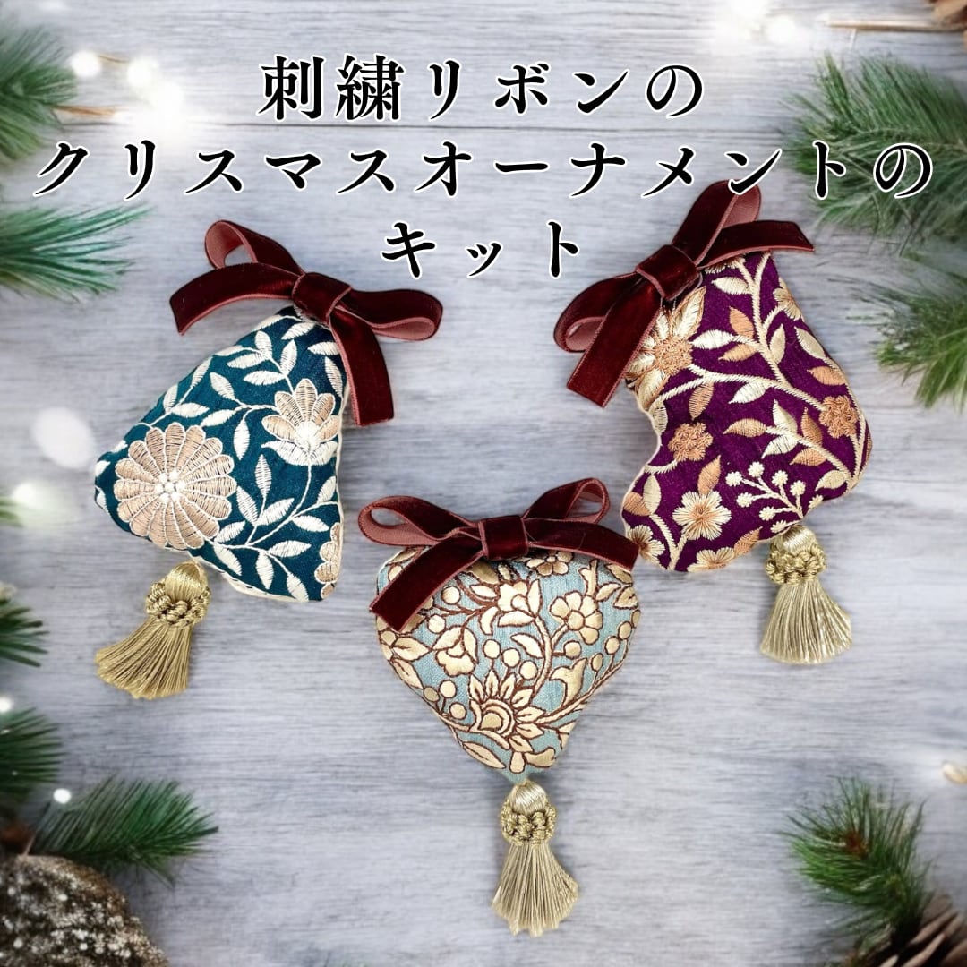 あなたにとっても素敵なホリデーとなりますようにという願いを込めて、インド刺繍リボンで作るクリスマスオーナメントのキットを開発しました!