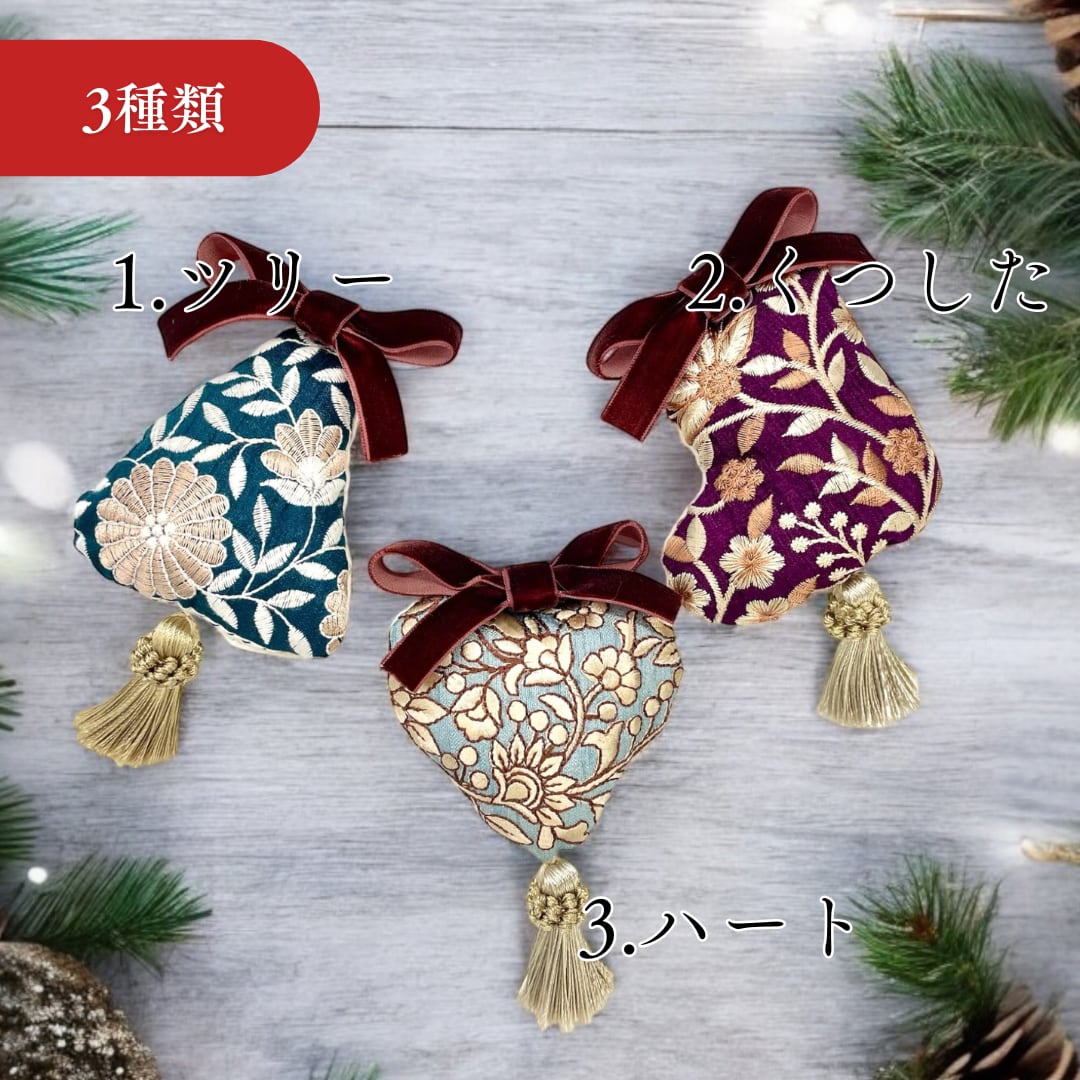 【期間限定販売】インド刺繍リボンでつくるクリスマスオーナメントのキット【